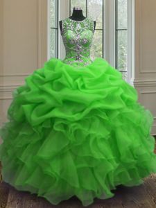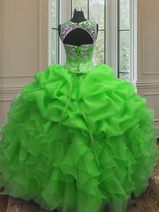 Noble Orange Ball Gowns Tulle Sweetheart Sleeveless Beading and Sequins Floor Length Lace Up Sweet 16 Dresses