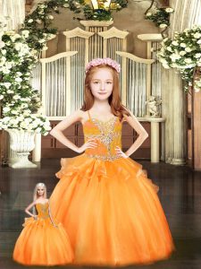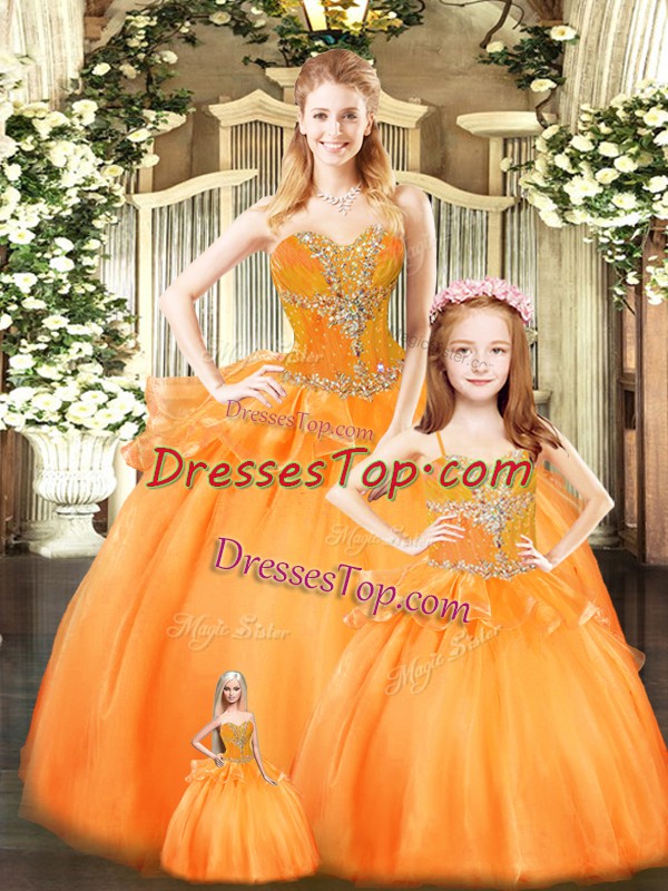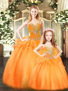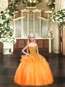 Noble Orange Red Sleeveless Beading and Ruffles Floor Length 15th Birthday Dress