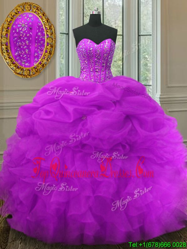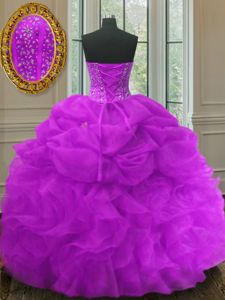 Noble Pick Ups Floor Length Ball Gowns Sleeveless Fuchsia Ball Gown Prom Dress Lace Up