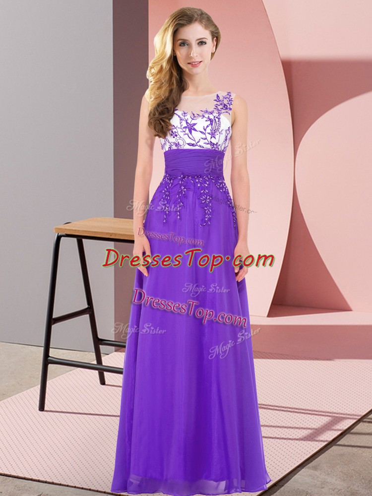 Noble Scoop Sleeveless Backless Dama Dress Purple Chiffon