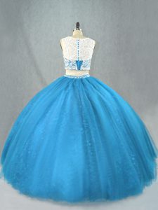 Noble Scoop Sleeveless Tulle 15 Quinceanera Dress Beading Zipper