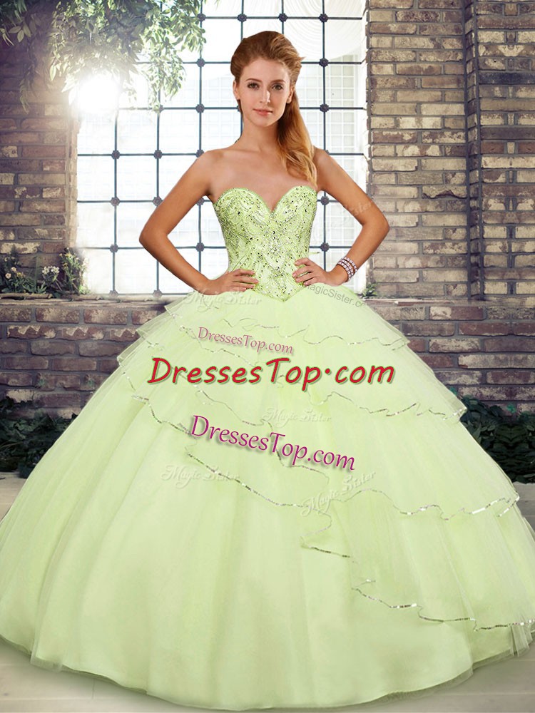 Noble Sweetheart Sleeveless Brush Train Lace Up 15 Quinceanera Dress Yellow Tulle