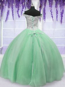 Off the Shoulder Apple Green Ball Gowns Beading Quinceanera Dresses Lace Up Tulle Sleeveless Floor Length