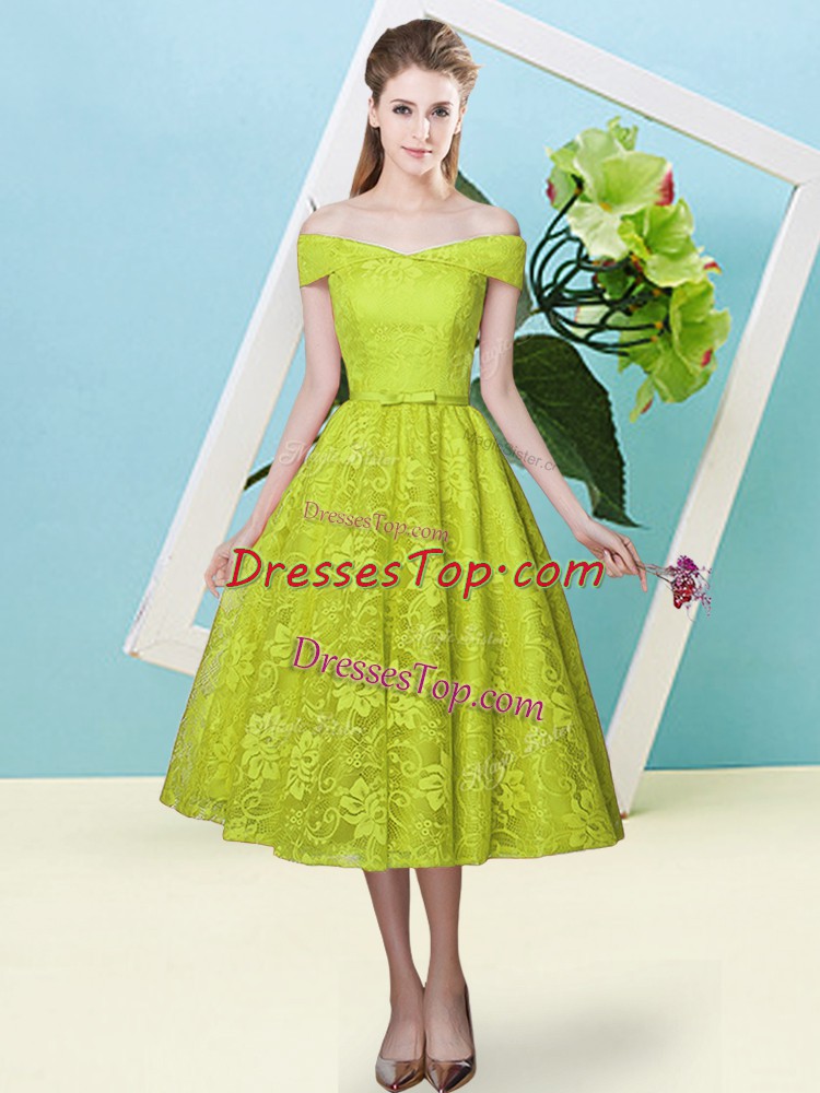 Off The Shoulder Cap Sleeves Lace Up Quinceanera Dama Dress Olive Green Lace