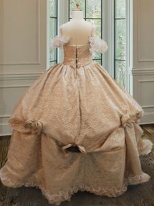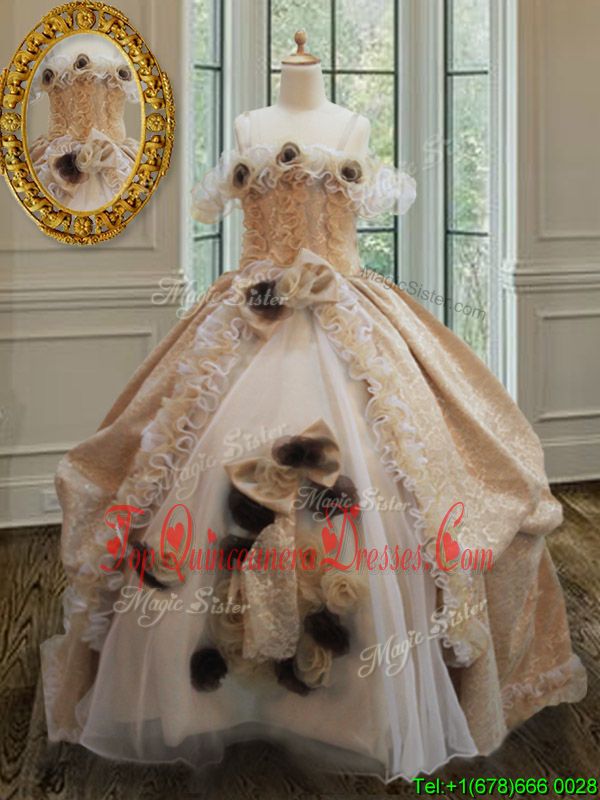 Off the Shoulder Champagne Organza and Lace Zipper Vestidos de Quinceanera Sleeveless Floor Length Lace and Ruffles and Hand Made Flower