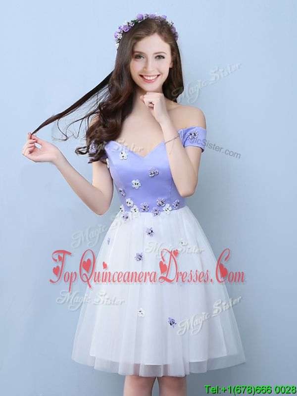 Off the Shoulder Knee Length A-line Sleeveless White Quinceanera Dama Dress Lace Up