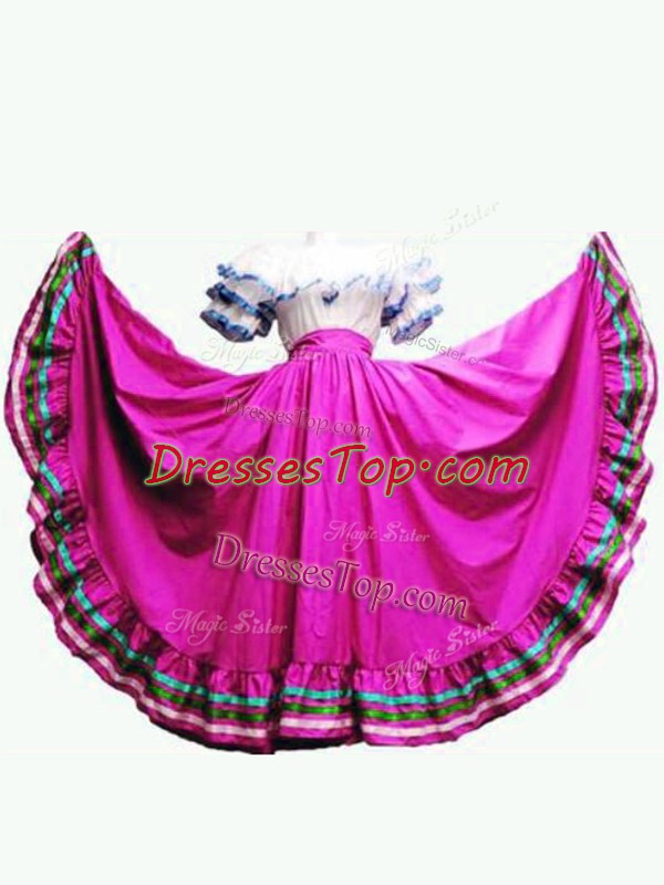 Off The Shoulder Short Sleeves Lace Up Ball Gown Prom Dress Fuchsia Taffeta