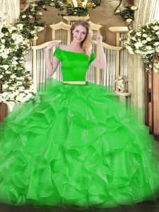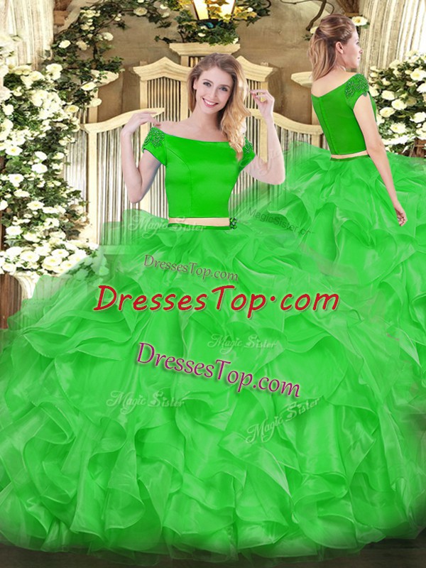 Off The Shoulder Short Sleeves Zipper Sweet 16 Quinceanera Dress Green Organza