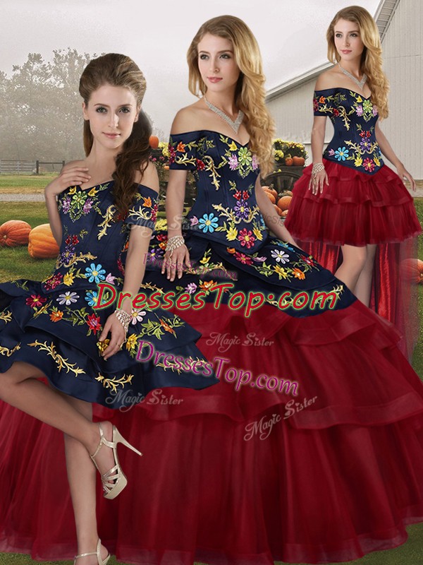 Off The Shoulder Sleeveless Brush Train Lace Up Sweet 16 Quinceanera Dress Wine Red Tulle