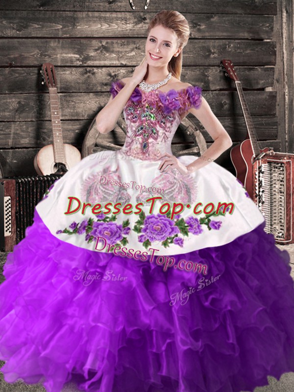 Off The Shoulder Sleeveless Lace Up 15 Quinceanera Dress Purple Organza