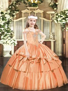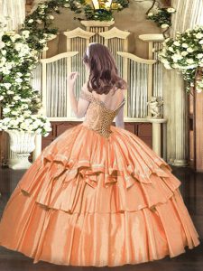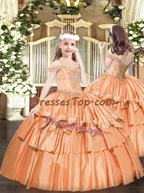 Off The Shoulder Sleeveless Lace Up Child Pageant Dress Orange Organza