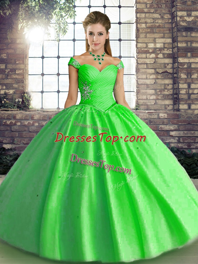 Off The Shoulder Sleeveless Lace Up Quinceanera Dresses Green Tulle