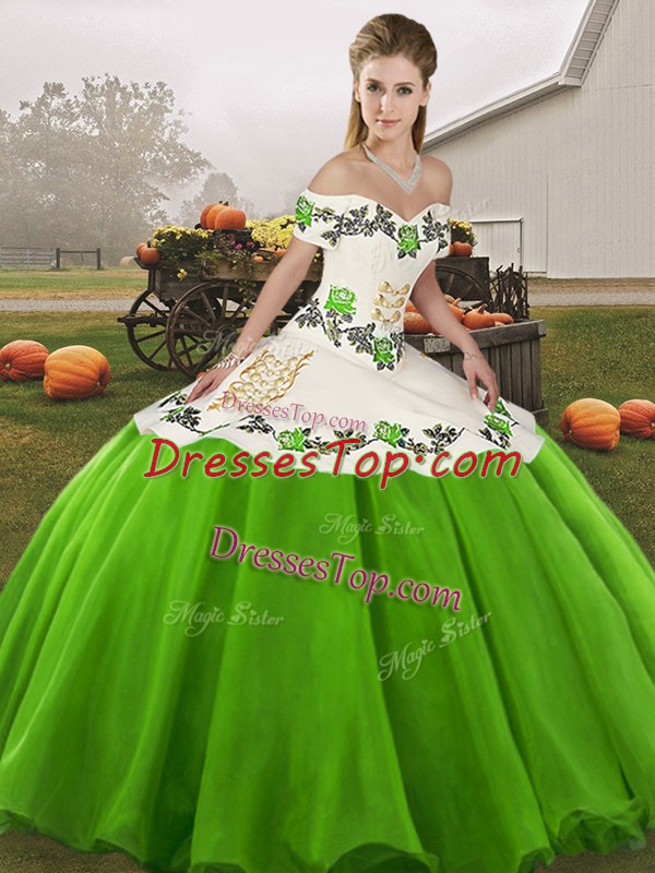 Off The Shoulder Sleeveless Organza Sweet 16 Dress Embroidery Lace Up