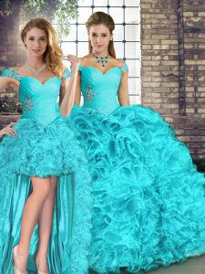 Off The Shoulder Sleeveless Organza Vestidos de Quinceanera Beading and Ruffles Lace Up