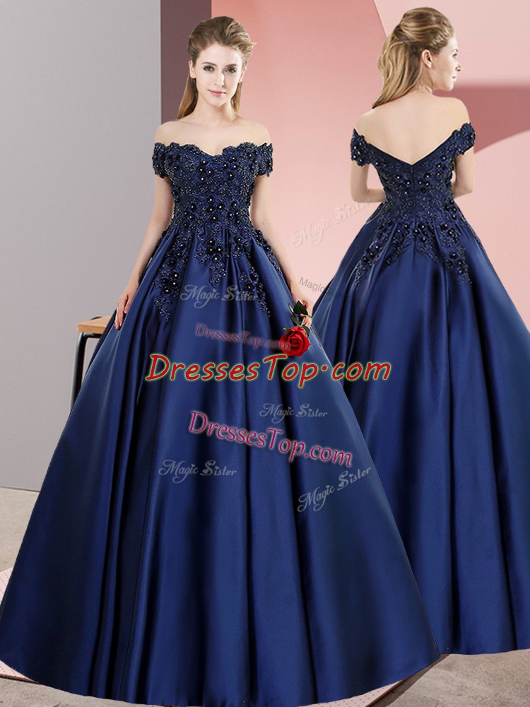 Off The Shoulder Sleeveless Satin Quinceanera Gown Lace Zipper