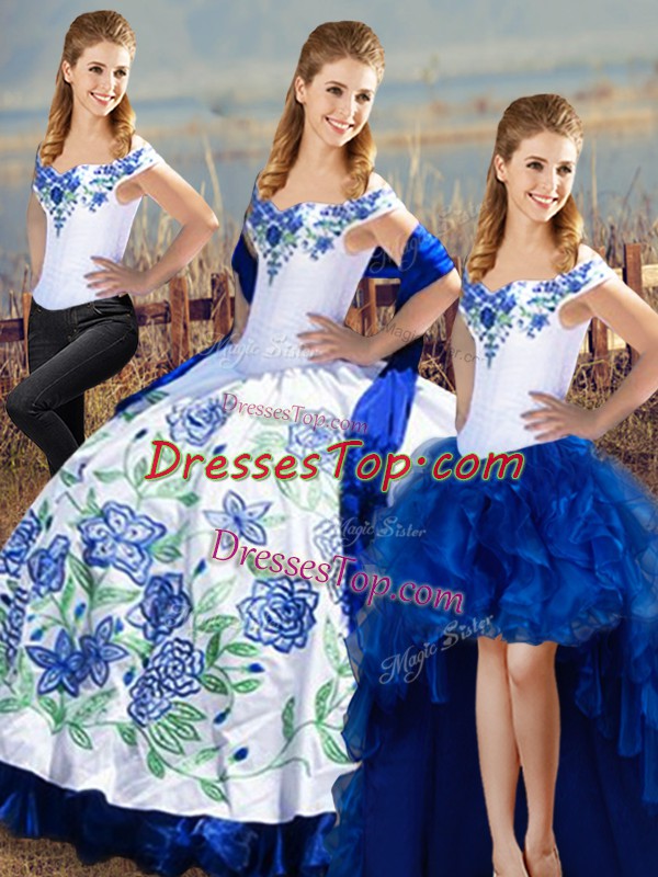 Off The Shoulder Sleeveless Satin Quinceanera Gowns Embroidery Lace Up
