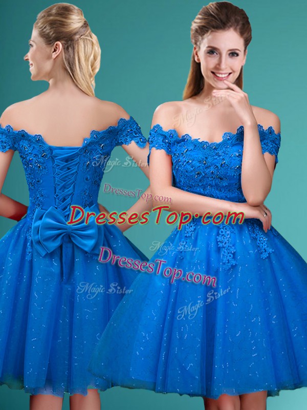 Off The Shoulder Sleeveless Tulle Dama Dress for Quinceanera Lace and Belt Lace Up