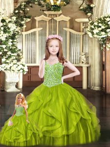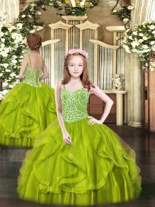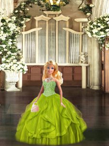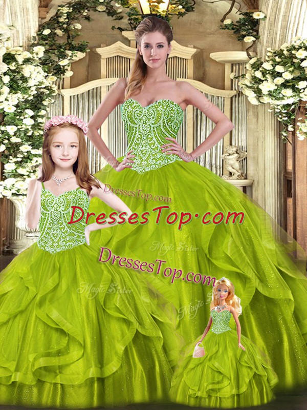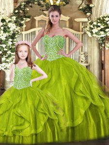 Olive Green Ball Gowns Sweetheart Sleeveless Organza Floor Length Lace Up Beading and Ruffles Quinceanera Dresses
