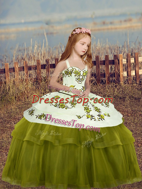 Olive Green Custom Made Pageant Dress Party and Wedding Party with Embroidery Straps Sleeveless Lace Up