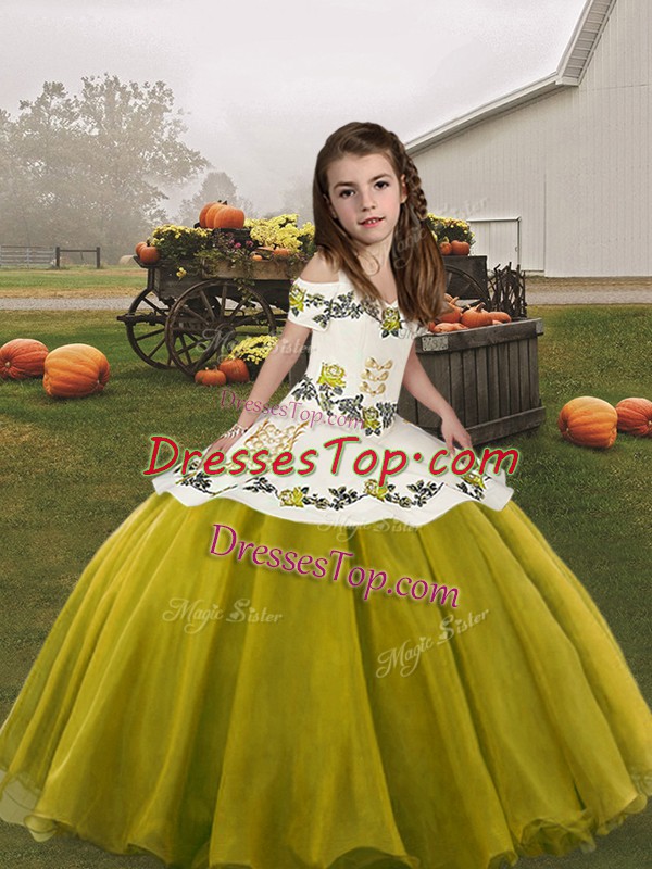 Olive Green Organza Lace Up Pageant Dress Toddler Sleeveless Floor Length Embroidery
