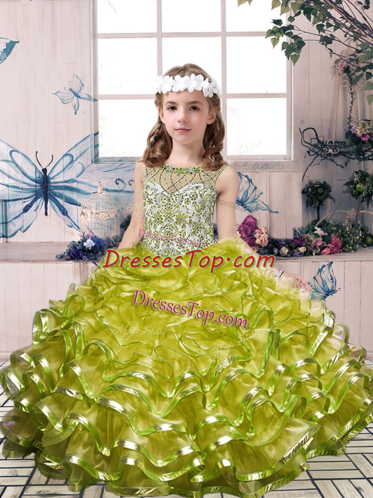 Olive Green Scoop Neckline Beading and Ruffles Pageant Dress for Teens Sleeveless Lace Up