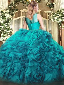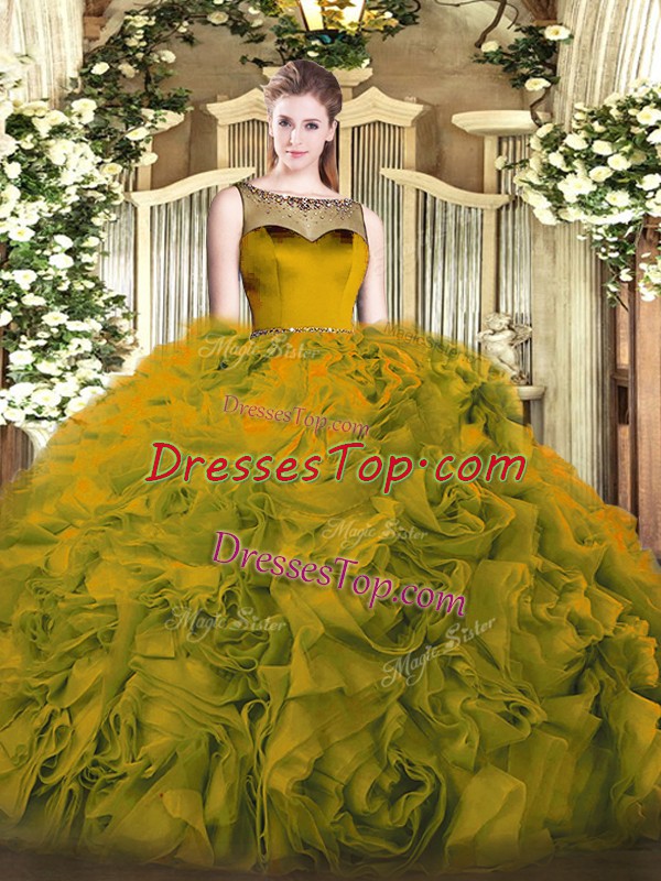 Olive Green Sleeveless Beading Floor Length Sweet 16 Quinceanera Dress