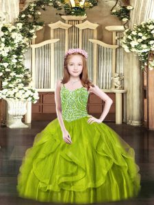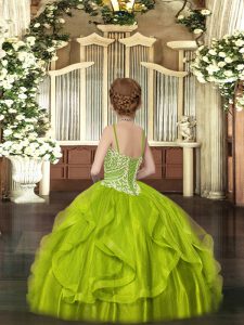 Olive Green Sleeveless Tulle Lace Up Little Girl Pageant Gowns for Party and Quinceanera