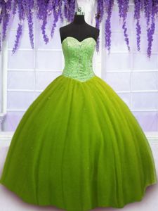 Olive Green Sleeveless Tulle Lace Up Quinceanera Gowns for Military Ball and Sweet 16 and Quinceanera