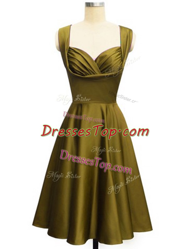 Olive Green Straps Neckline Ruching Quinceanera Dama Dress Sleeveless Lace Up