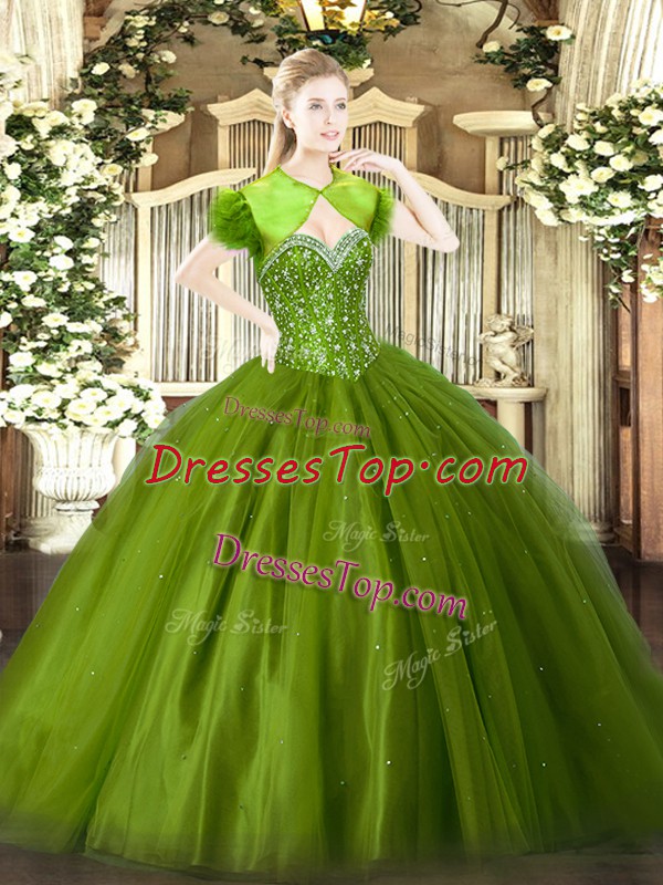 Olive Green Sweetheart Lace Up Beading Quince Ball Gowns Sleeveless