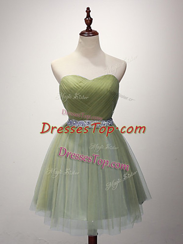 Olive Green Sweetheart Neckline Beading and Ruching Quinceanera Dama Dress Sleeveless Lace Up