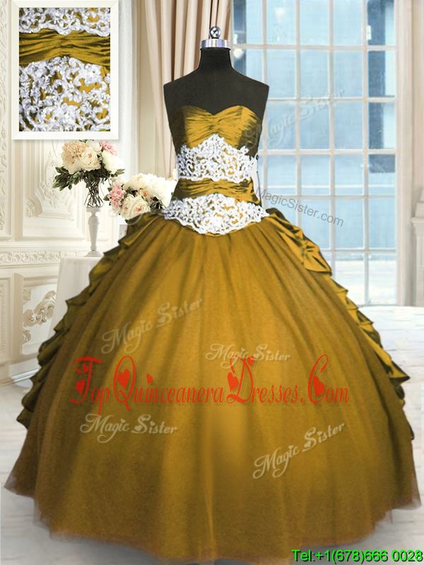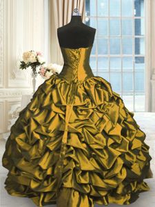 Olive Green Taffeta and Tulle Lace Up Quince Ball Gowns Sleeveless Floor Length Beading and Appliques and Pick Ups