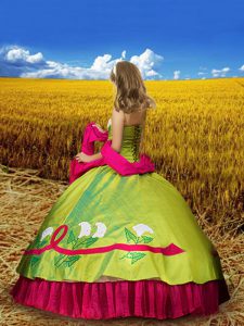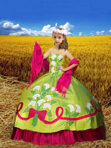 Olive Green Taffeta Lace Up Spaghetti Straps Sleeveless Floor Length Little Girls Pageant Gowns Embroidery