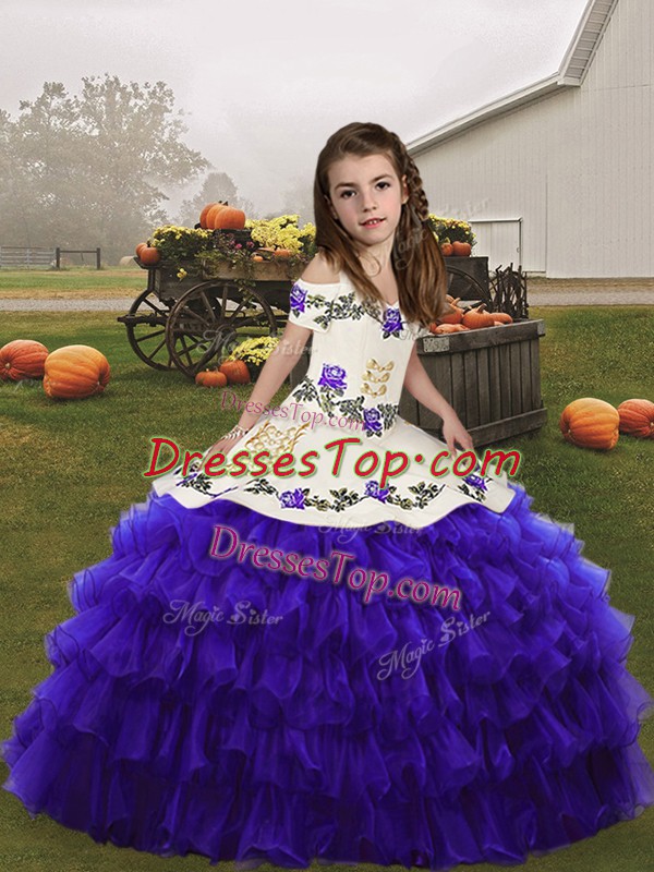 On Sale Embroidery and Ruffled Layers Child Pageant Dress Purple Lace Up Sleeveless Floor Length