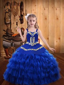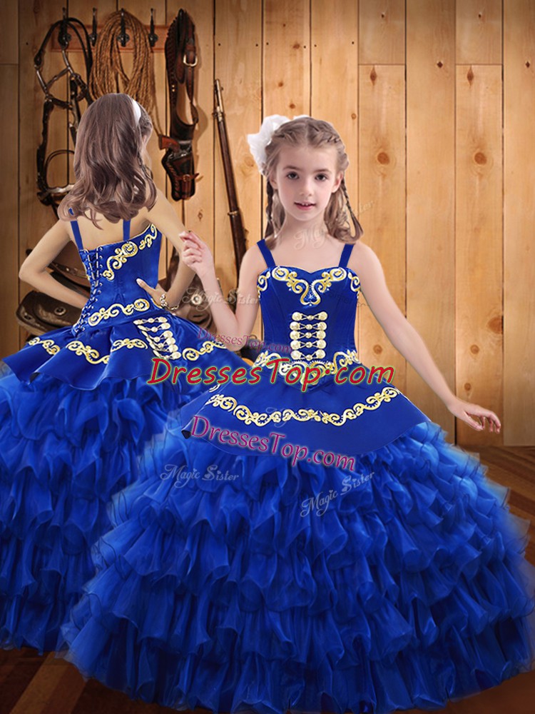 On Sale Floor Length Ball Gowns Sleeveless Royal Blue Kids Pageant Dress Lace Up