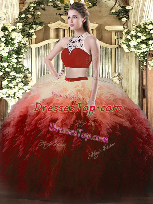 On Sale Floor Length Multi-color 15th Birthday Dress High-neck Sleeveless Backless