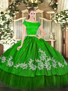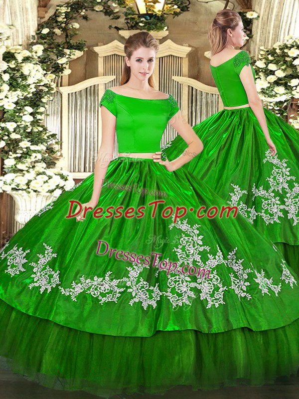 On Sale Green Short Sleeves Embroidery Floor Length Quinceanera Dress