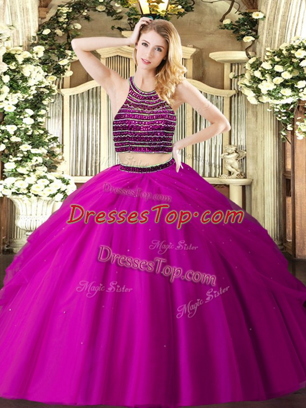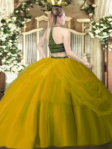 On Sale Halter Top Sleeveless Tulle Sweet 16 Dress Beading and Ruching Zipper