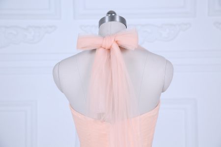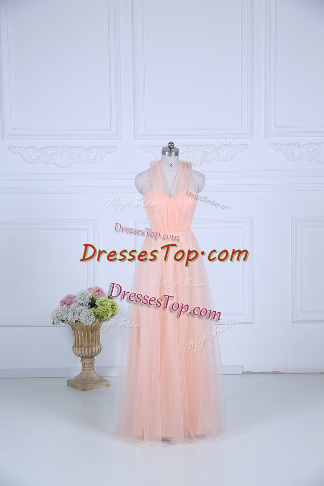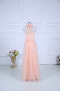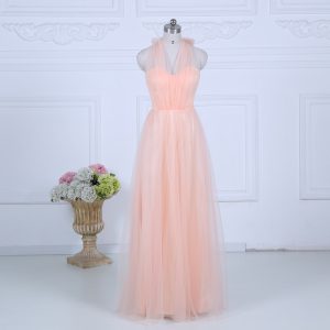 On Sale Halter Top Sleeveless Zipper Dama Dress for Quinceanera Peach Tulle