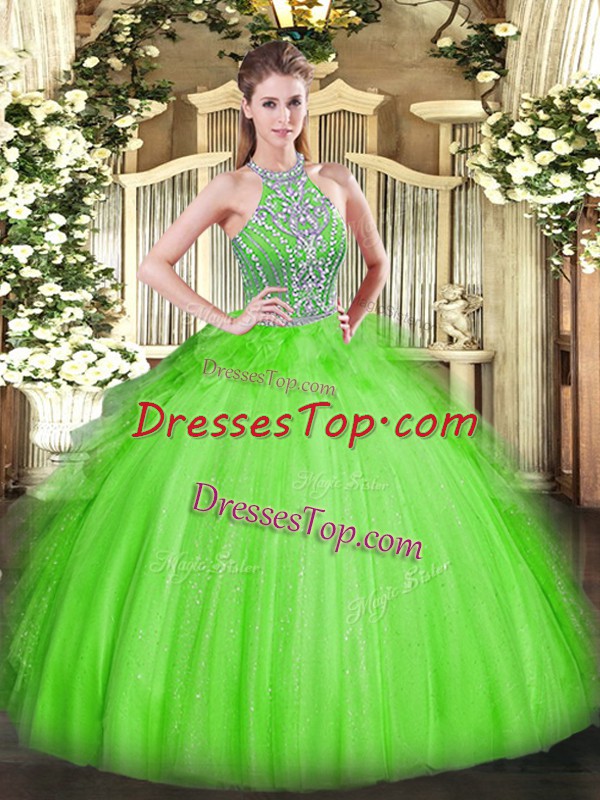 On Sale Lace Up Sweet 16 Quinceanera Dress Beading and Ruffles Sleeveless Floor Length