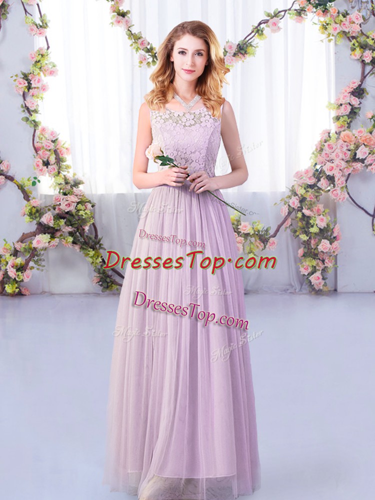On Sale Lavender Dama Dress for Quinceanera Wedding Party with Lace and Belt Scoop Sleeveless Side Zipper