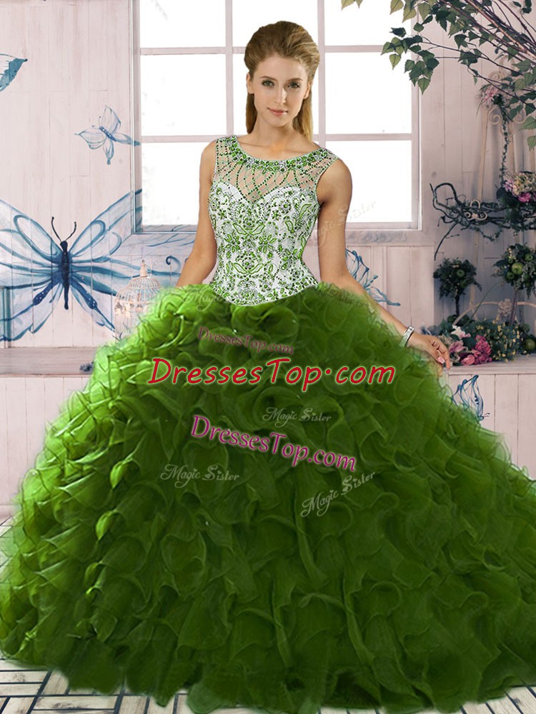 On Sale Organza Sleeveless Floor Length 15th Birthday Dress and Beading and Ruffles