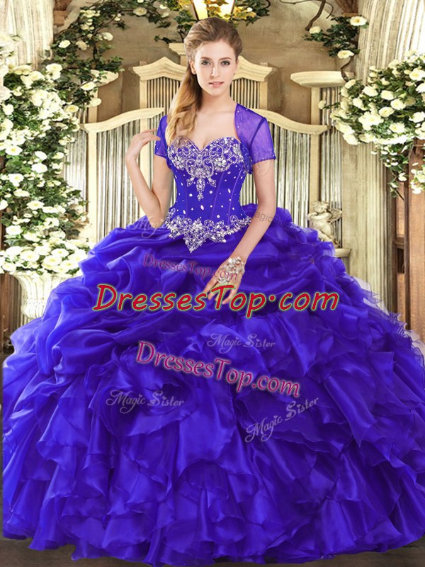 On Sale Purple Sweetheart Lace Up Beading and Ruffles and Pick Ups Sweet 16 Dress Sleeveless