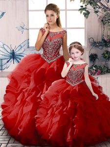 On Sale Red Sleeveless Beading and Ruffles Floor Length 15 Quinceanera Dress