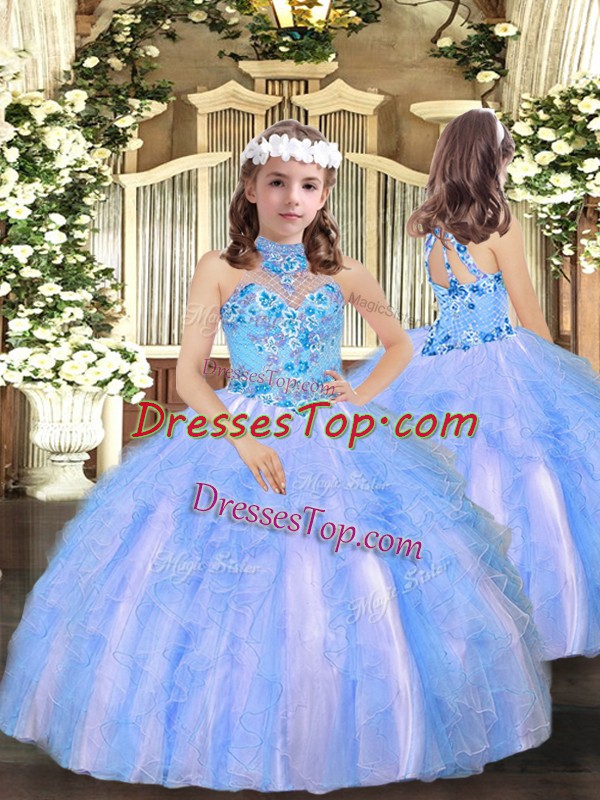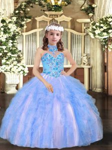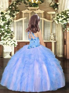 On Sale Sleeveless Lace Up Floor Length Appliques and Ruffles Little Girls Pageant Gowns