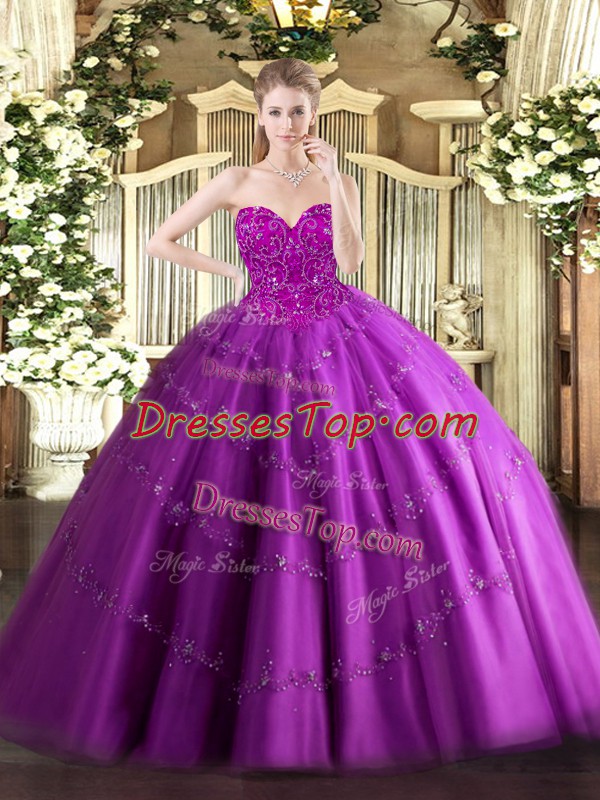 On Sale Sleeveless Lace Up Floor Length Beading Quinceanera Dress