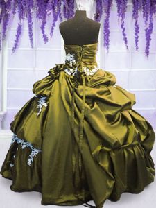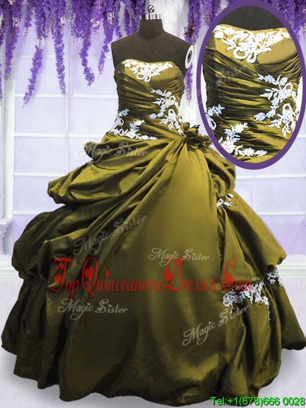 On Sale Taffeta Sleeveless Floor Length Ball Gown Prom Dress and Appliques and Pick Ups