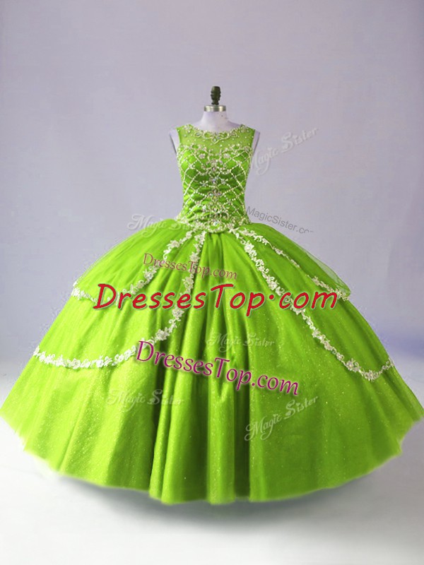 On Sale Tulle Scoop Sleeveless Zipper Beading and Appliques Quinceanera Dresses in