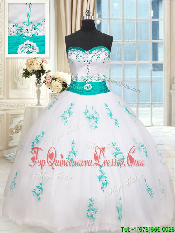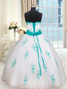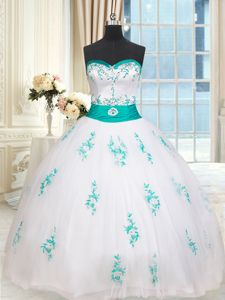 On Sale White Tulle Lace Up Quinceanera Dress Sleeveless Floor Length Beading and Appliques
