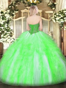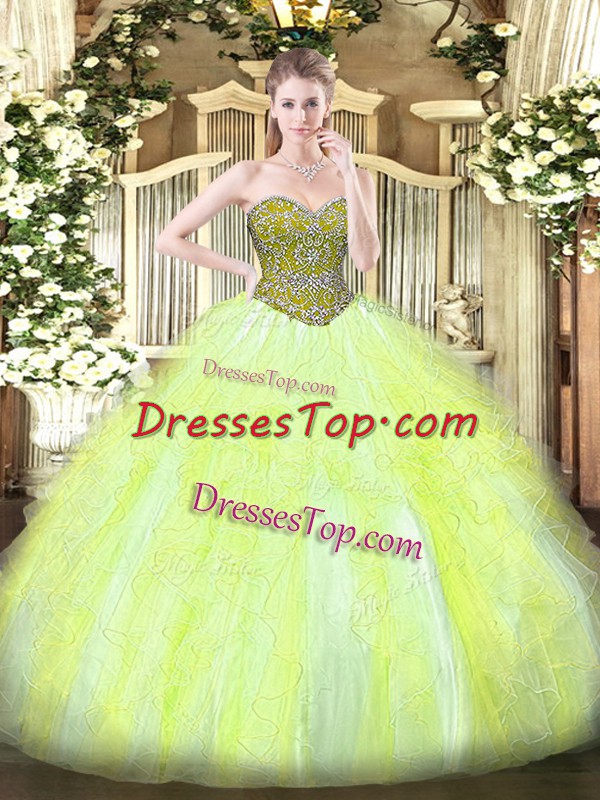 On Sale Yellow Green Ball Gowns Beading and Ruffles 15 Quinceanera Dress Lace Up Tulle Sleeveless Floor Length